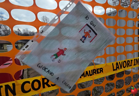 Sono una dozzina, a tratti simpatici, a tratti commoventi, i disegni, su fogli A4, imbustati in cartelline trasparenti comparsi da qualche giorno sulle reti arancio da cantiere che delimitano il perimetro dell'area all'interno della quale dovrebbe "sorgere" l'anfiteatro di