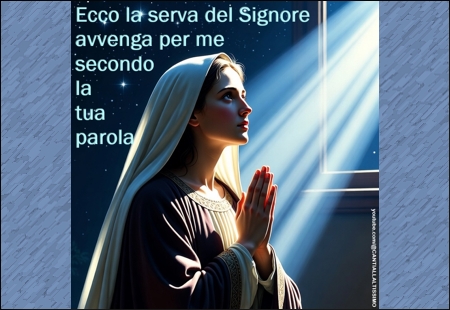 In quel tempo. L’angelo Gabriele fu mandato da Dio in una città della Galilea, chiamata Nàzaret, a una vergine, promessa sposa di un uomo della casa di Davide, di nome Giuseppe. La vergine si chiamava Maria. Entrando da lei, disse: «Rallégrati, piena di grazia: il Signore è con te».
