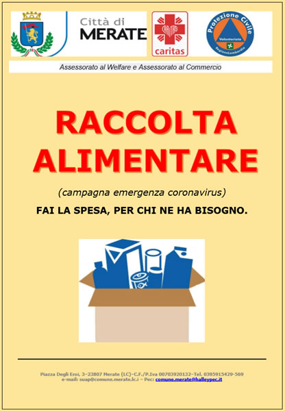 In pratica chi vorrà, recandosi in uno dei negozi che si è reso disponibile, potrà acquistare generi alimentari per chi ne ha bisogno, depositandoli in uno spazio che il commerciante avrà riservato e per i quali sarà tenuto a compilare un apposito modulo che certifichi i prodotti da consegnare poi alla protezione civile che, a sua volta, si occuperà di portarli poi alla Caritas Sant'Ambrogio di Merate per la distribuzione alle famiglie che ne hanno bisogno.