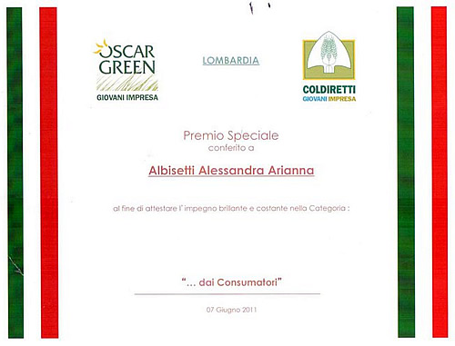 Ha trasformato la passione per l'orto di nonno Alfredo in una vera e propria attività agricola, che produce in modo "naturale" verdure e piante aromatiche per conto terzi e destinate ai Gruppi di Acquisto Solidale. La 24enne cernuschese Alessandra Albisetti è stata premiata a Milano nella giornata del 7 giugno nell'ambito degli "Oscar 2011 dell'Agricoltura Lombarda" promossi dalla Coldiretti di Como e Lecco, ricevendo la menzione speciale "Dai Consumatori" per aver fatto nascere e crescere l'Azienda Agricola Andegardo (dal nome della frazione del paese).