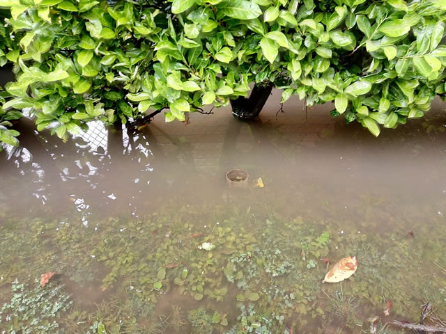 Merate, notte tra il 14 e 15 maggio 2020: un giardino in parte sommerso dall'acqua