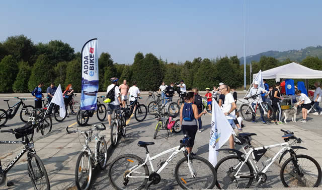 Con partenza da punti distinti i due gruppi hanno realizzato una pedalata e si sono incrociati poi a Moscoro, al parcheggio esterno delle scuole medie dell'Istituto Comprensivo di Cernusco Lombardone. Lì una postazione di ADDAeBIKE, con biciclette a pedalata assistita. I partecipanti all'iniziativa hanno avuto modo di provare i mezzi elettrici per strada, sulla pista ciclopedonale e anche per qualche tratto nei boschi della zona.