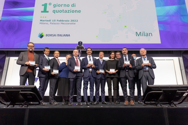 Alle 8.59 è partito il conteggio alla rovescia mentre dai maxi schermi venivano proiettate immagini di Milano e del mondo. Allo zero uno scrosciante applauso ha salutato lo scampanellio un po' sincopato, mentre i quattro imprenditori si abbandonavano a un abbraccio liberatorio. Il primo a prendere la parola è stato l'A.D. interrotto dopo pochi secondi dalla comunicazione del primo fixing: 6.24 pari al + 9.74%.