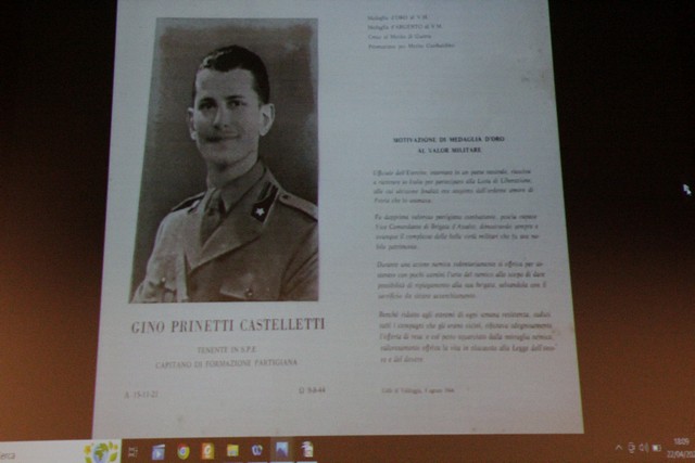 A concludere è stato Alessandro Orsi che ha raccontato proprio della Resistenza del capitano Gino Prinetti Castelletti in Valsesia dove poi è morto, in uno scontro con le milizie nazi-fasciste, "per un eccesso di generosità" accompagnando i suoi uomini, nonostante il suo grado di comandante gli consentisse di non esporsi nelle prime file. Giunto dalla Svizzera per un sano patriottismo, con la volontà di difendere la sua terra, ha un approccio non particolarmente brillante con i partigiani che, come prima cosa, lo mettono in cucina. Ma il suo temperamento, la sua mitezza e al tempo stesso determinazione, la sua capacità di mettersi al fianco dei suoi uomini gli valgono ben presto la loro fedeltà e stima. "E' un monarchico e un borghese fino al midollo ma gli uomini si sono fidati subito di lui" è il ritratto che Moscatelli da di Prinetti, un uomo dunque di valore. Sulla sua bara verrà adagiata la bandiera con lo stemma dei Savoia a memoria di un partigiano patriota che ha combattuto contro l'invasore. Il funerale si celebra anche a Merate il 2 settembre del 1945 e la salma viene tumulata nella cappella nel cimitero cittadino. Nel 1948 il padre pubblica un libro in memoria del figlio e nel 1965 la sorella scrive un romanzo dove narra le vicende della sua famiglia, quelle avvenute per lo più a villa Subaglio.