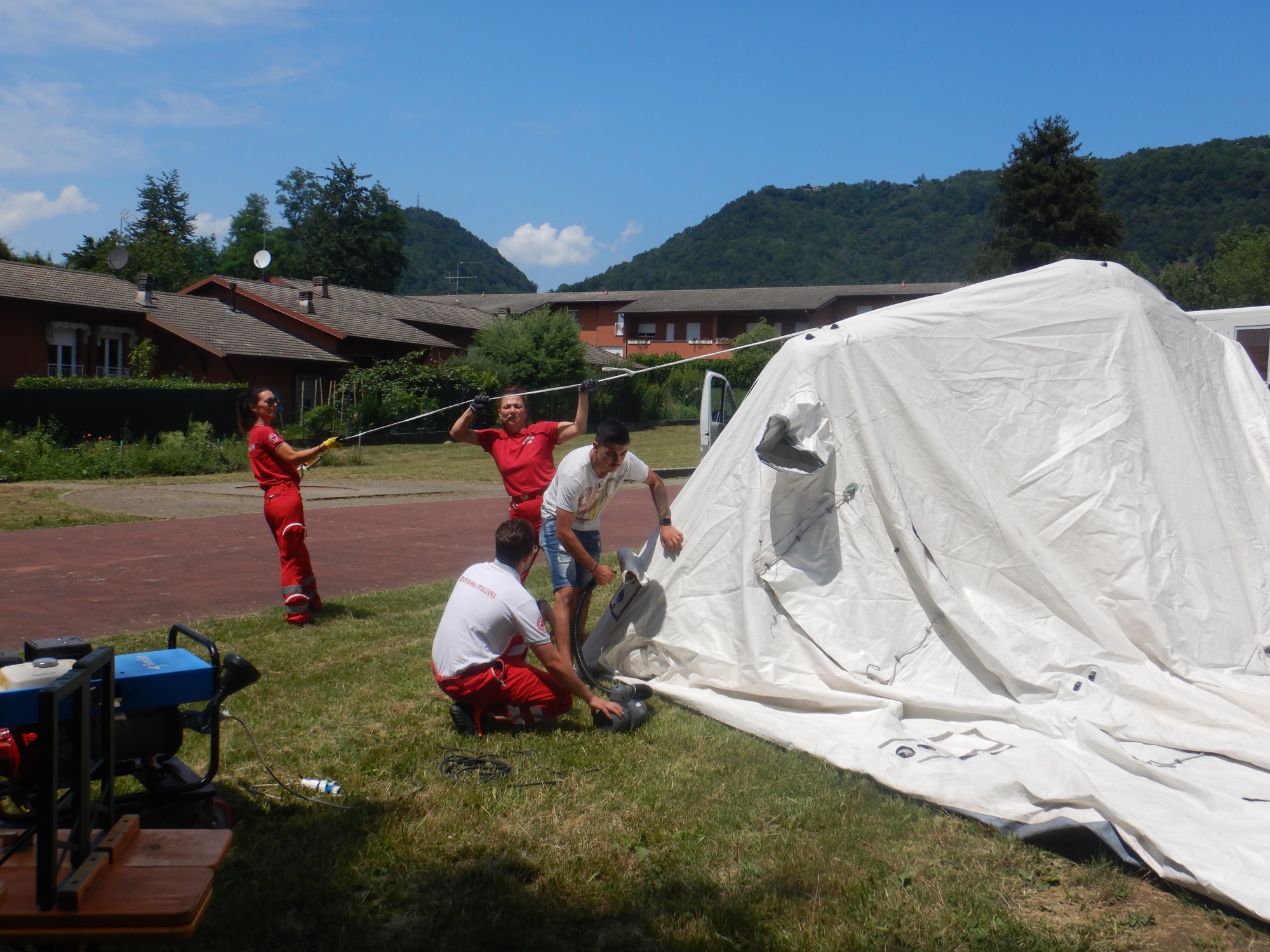 Dopo aver presenziato alla cerimonia di apertura, durante la quale è avvenuto il saluto del coordinatore del campo Mauro Sottocornola, del presidente del comitato meratese di Croce Rossa Claudio Ferrario, del sindaco Marco Panzeri, del consigliere provinciale delegato alla Protezione Civile Stefano Simonetti, del comandante di Polizia Locale Vincenzo Barile e del capo squadra dei Vigili del Fuoco Leonardo Bonanomi, i volontari si sono sistemati nel campo in attesa del briefing, all’oscuro di quello che sarebbe accaduto di lì a poche ore. Nel frattempo membri della Protezione Civile del gruppo Rescue Drones Network Odv, grazie ai loro potenti mezzi hanno iniziato a sorvolare l’area dell’intervento e a catturare immagini, proprio come farebbero durante un’emergenza vera.