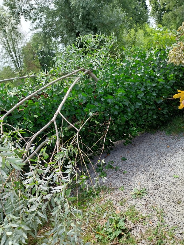 Un grosso albero è stato abbattuto dal vento a Sartirana e è caduto dentro il lago ostruendo completamente il passaggio sul sentiero circumlacuale. La pianta è stata letteralmente divelta e ora giace con le radici scoperte nel giardino in cui era a dimora, e il fogliame nell’acqua.