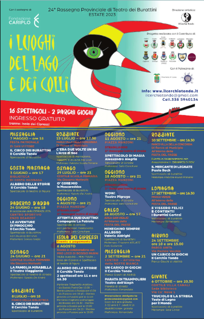 L’ingresso agli eventi sarà gratuito, in caso di maltempo si svolgeranno nella palestra della scuola primaria. Per altre iniziative del ciclo “I luoghi del lago e dei colli” consultare la locandina o il sito www.ilcerchiotondo.it