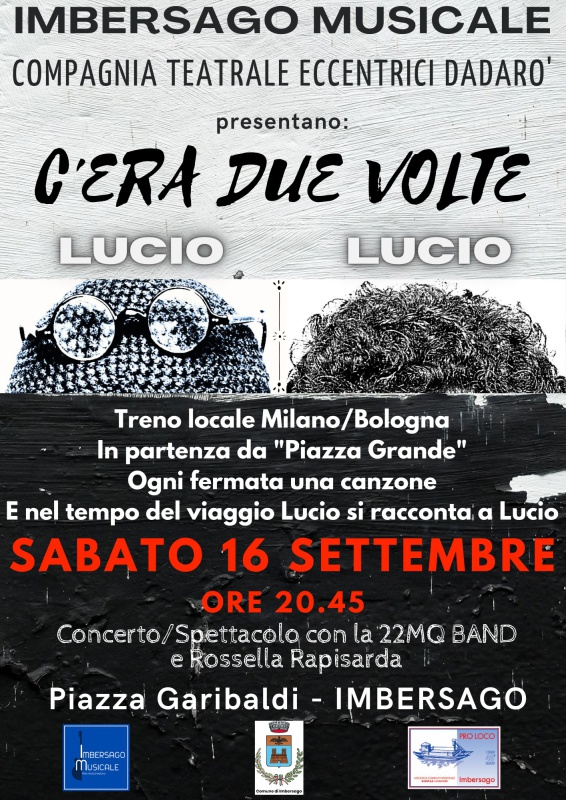 Sabato 16 settembre alle ore 20.45, Imbersago Musicale e la compagnia teatrale Eccentrici Dadarò si esibiranno in Piazza Garibaldi in uno spettacolo musicato con la band milanese 22MQ.
