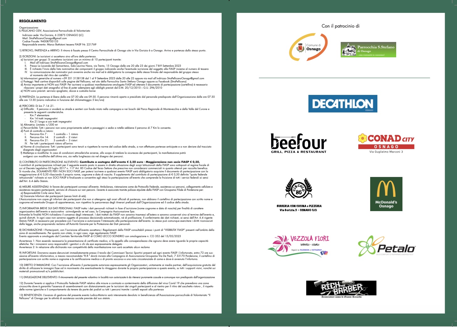 L'Odv "Il Pellicano" di Osnago ha organizzato per il prossimo 10 settembre la prima “Strapellicano”, una camminata non competitiva omologata FIASP il cui fine è il finanziamento delle attività no profit erogate dalla stessa Odv.
