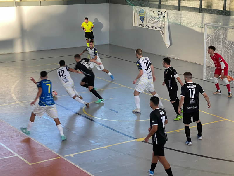 Il match inizia praticamente con il punteggio di 0-1. Un errore in fase di palleggio delle saette, infatti, permette al Real Five Rho di passare in vantaggio dopo neanche un giro d’orologio. Con la gara in salita, l’Energy prova una reazione di carattere, ma gli errori sotto porta sono tanti e quelli dietro permettono agli ospiti di presentarsi spesso davanti alla porta difesa da Blanco. Ci pensa Sardella, con un bolide da fallo laterale a fare 1-1, poi è il Rho ad andare ancora in vantaggio sfruttando una disattenzione difensiva. Donato Russo, però, ristabilisce ancora la parità, chiudendo la prima frazione su un 2-2 che, alla luce di un tiro libero, due punizioni dal limite, un palo e diverse occasioni da rete, sta stretto all’Energy. Nella ripresa, il Rho trova il terzo vantaggio e mister Ferrari gioca la carta del portiere di movimento. Tuttavia, il copione non cambia: l’Energy Saving non realizza le occasioni create e subisce il 4-2 su una palla persa e calciata da lontano dal difensore ospite. Il 5-2, poi, taglia definitivamente le gambe ai lomagnese, la cui doppietta di Sardella serve solo a rendere meno ampio lo scarto finale.