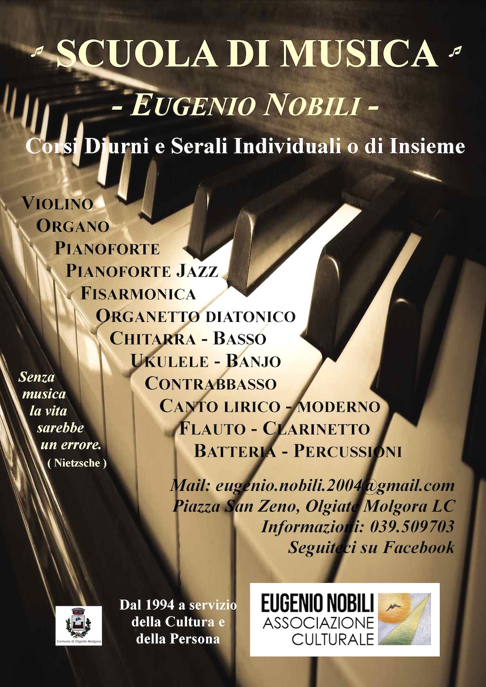 Sono pronti a partire alla scuola di musica Eugenio Nobili di Olgiate Molgora i nuovi corsi di contrabbasso, organo, fisarmonica e organetto. In particolare, a insegnare contrabbasso sarà il maestro Alberto Boffelli, diplomato al Conservatorio di Milano. Darà lezioni di organo invece il maestro Andrea Galbusera – diplomato al Conservatorio di Bergamo – e terrà i corsi di fisarmonica e organetto il maestro Sara Calandi – diplomata al Conservatorio di Milano. I corsi sono diurni e serali.
