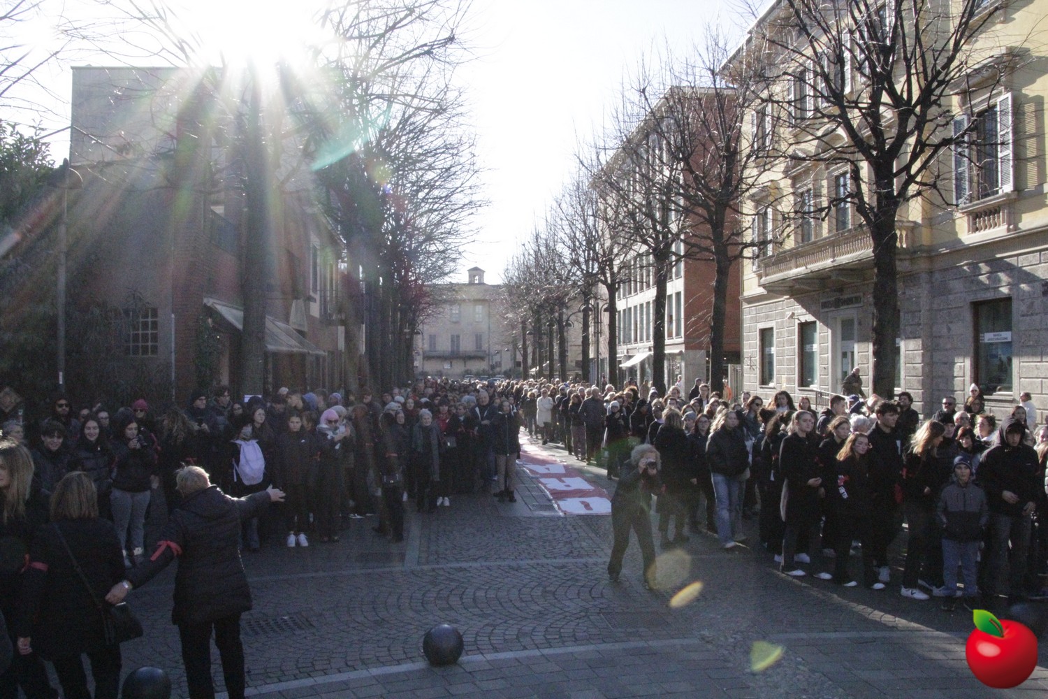 La manifestazione, che cade proprio nella giornata internazionale dedicata a questo tema, è stata molto semplice e curata. Un lungo striscione rosso nel cannocchiale via Baslini con la scritta “Ora basta”, due ali di folla (tra cui anche gli studenti di Agnesi di Viganò) di nero vestite con fiocchetti rossi al braccio e a fare da sottofondo la musica che ha scandito la marcia sino al castello.