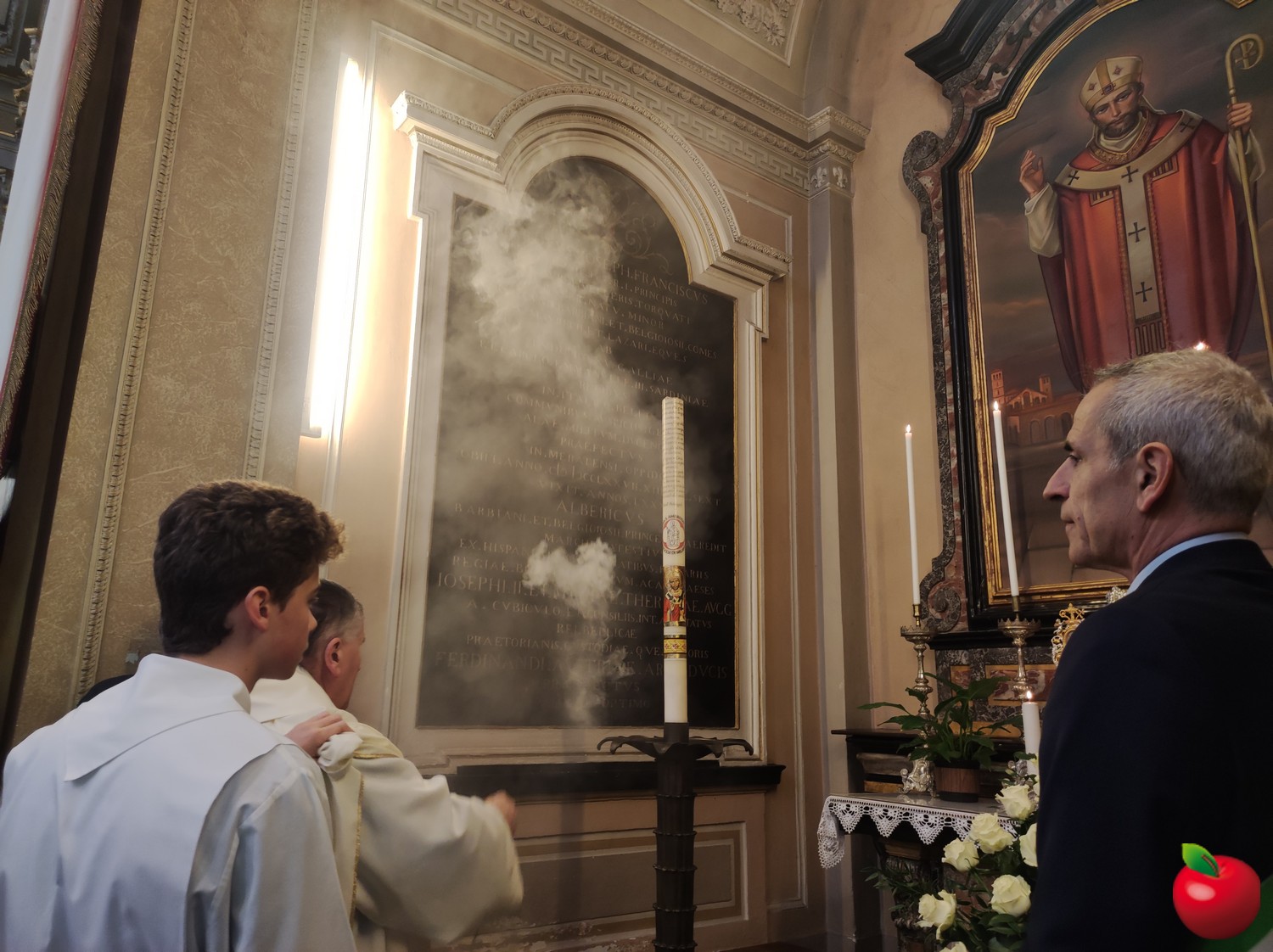Al termine dell’omelia, come da tradizione, i membri dell'Amministrazione comunale hanno portato i doni all'altare mentre il sindaco Massimo Panzeri, accompagnato da don Vincenzo e don Luigi, ha posizionato e acceso il cero nella cappella dedicata proprio al Santo Patrono della città.