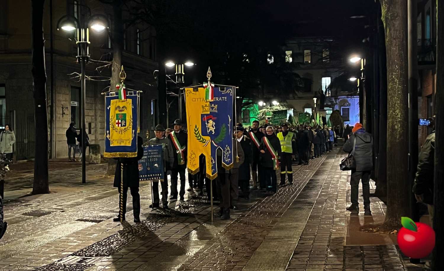 Come da tradizione, sotto le note dell’Inno d’Italia, si è tenuto il solenne rito di alzabandiera e sono stati onorati i caduti con la posa della corona d’alloro sul monumento. È iniziata quindi la fiaccolata che da piazza degli Eroi, attraversando il cuore della città ha condotto i presenti alla chiesa parrocchiale in via S. Ambrogio, dove don Eugenio Folcio di Novate ha accolto le Penne Nere e dove il capogruppo Claudio Ripamonti ha ripercorso i fatti tragici di quel lontano 1943.