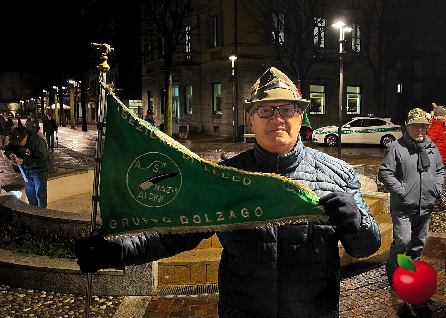 Per dare inizio alla cerimonia di commemorazione, lo schieramento di gagliardetti dei vari gruppi presenti ha onorato il vessillo della Associazione Nazionale Alpini, sezione di Lecco.