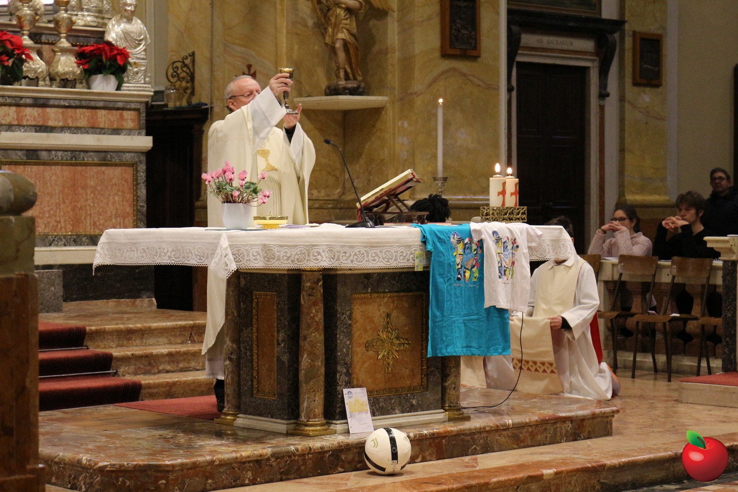 Al termine della funzione sacra, i bambini ed i ragazzi dell'oratorio hanno dato il benvenuto alla nuova guida regalando a don Stefano le due magliette del Grest, il libretto del campeggio con i grandi, la tessera del tradizionale Joy Week ed un pallone di calcio per invitarlo ad essere loro compagno di squadra. "GRAZIE! Gioiosi e riconoscenti al Signore non restiamo zitti, ma insieme esultiamo per il tuo arrivo tra noi. Benvenuto Don Stefano!".