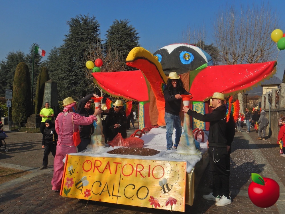 Tutto è iniziato in area San Vigilio a Calco poco dopo le 13. Sul sagrato della chiesa i volontari della Pro Loco, organizzatori dell’evento, hanno iniziato ad accogliere bimbi in maschera e genitori. Poi l’arrivo degli animatori del gruppo dell’oratorio ha anticipato l’entrata di due grandi carri trainati da trattori: la testa di grande totem rotante e un’altra coloratissima realizzazione. Musica, stelle filanti e coriandoli sparati a comando direttamente dai carri. La festa è iniziata.
