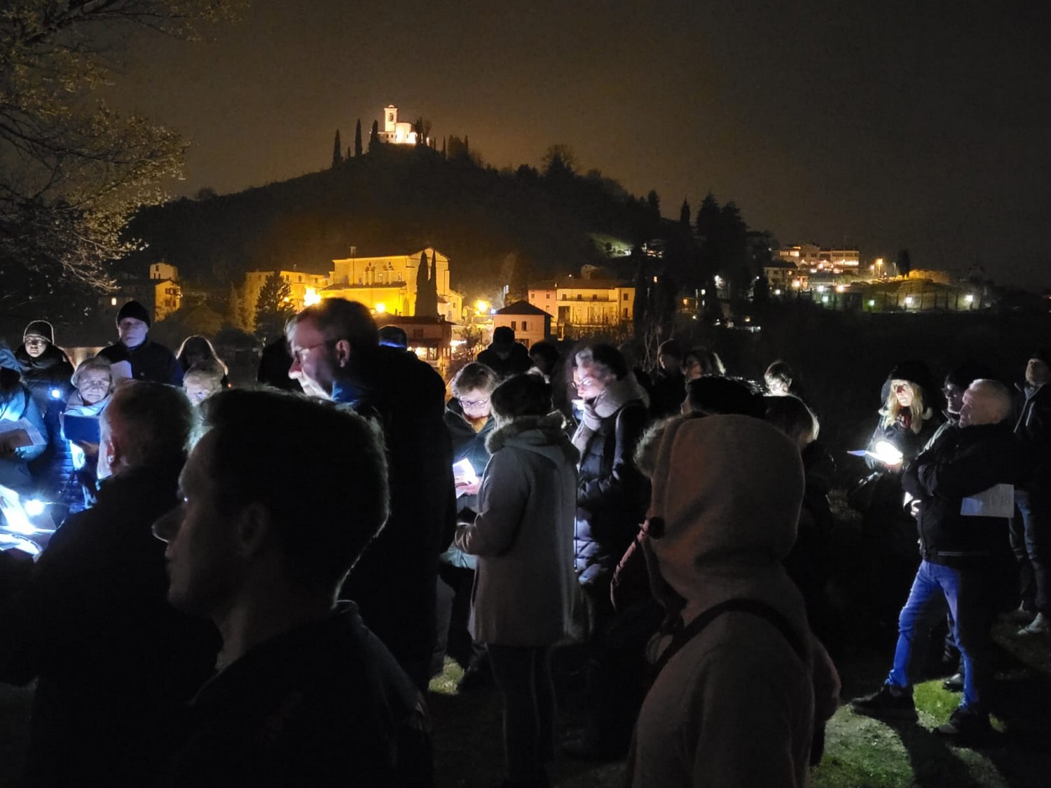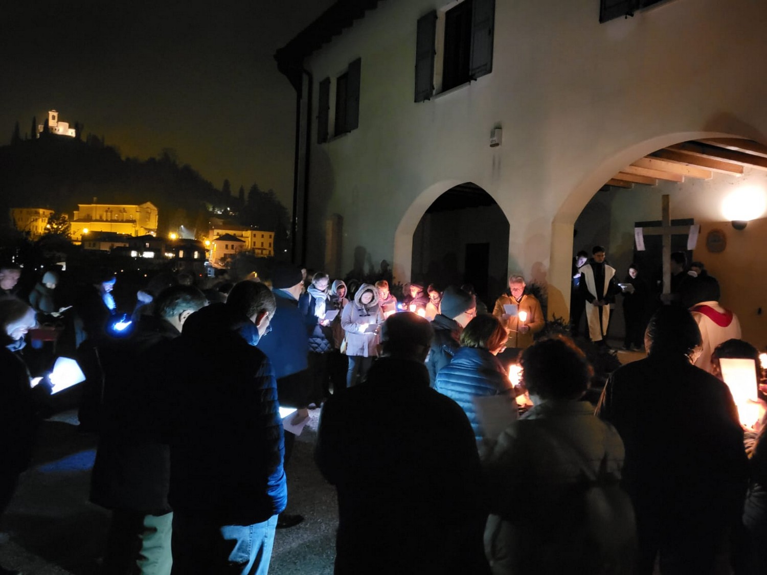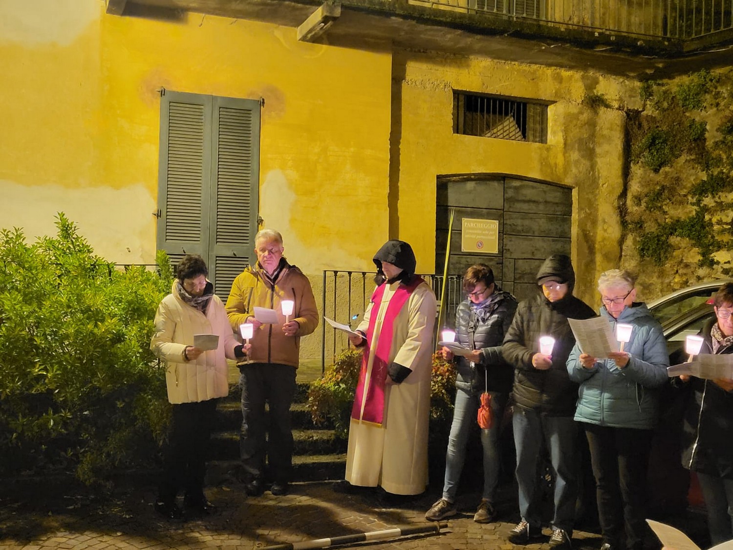 Il corteo si è snodato attraverso 8 stazioni incentrando gli spunti di riflessione su 'Voci di Pace in un mondo di guerra'. La funzione è stata animata dal gruppo giovani e adolescenti dell'oratorio san Domenico Savio di Montevecchia ed è stata partecipata da un discreto numero di persone.