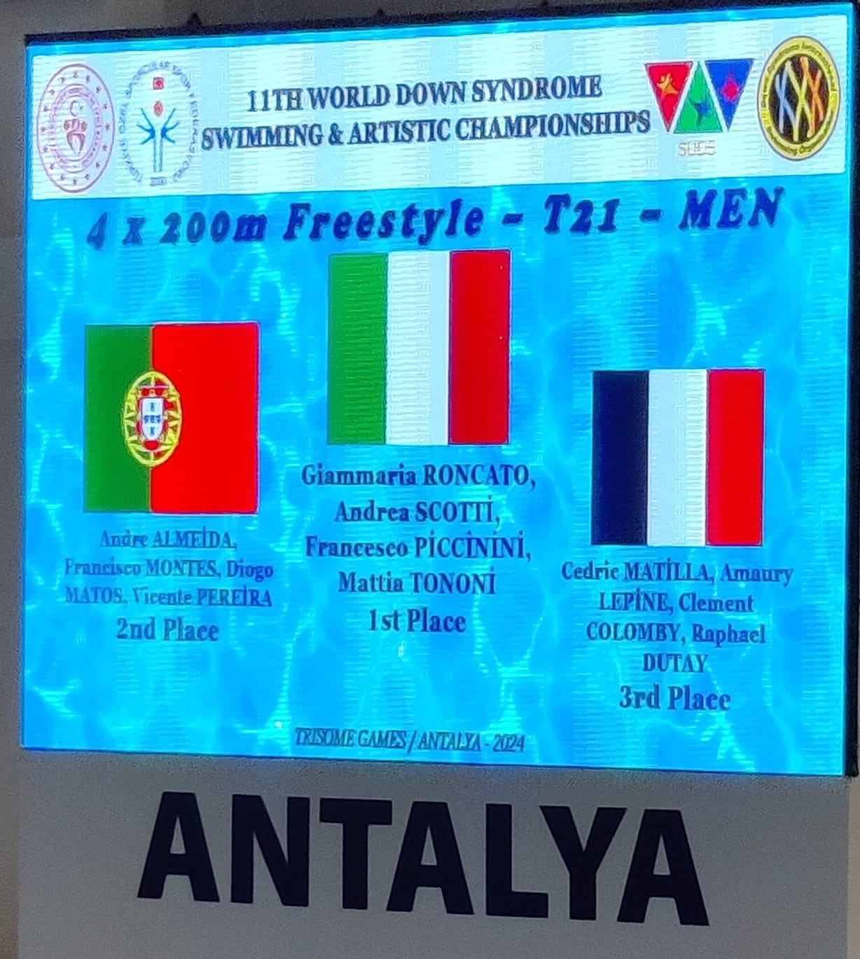 Ordine di arrivo: Italia, Portogallo, Francia