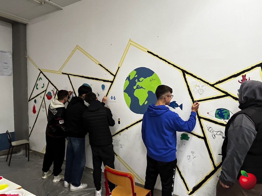La giornata è stata anche un’occasione per rimettere mano a dei murales iniziati in alcune aule tempo fa.