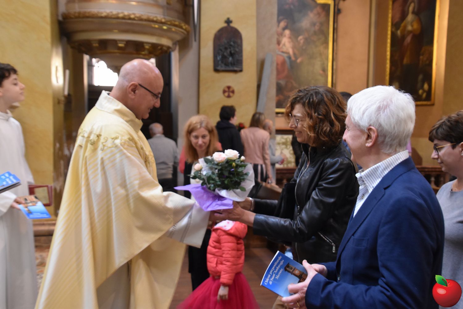 Al termine della celebrazione don Luigi ha chiamato davanti all'altare una ad una le coppie per consegnare loro in ricordo di questa giornata una composizione di rose già sbocciate: “C'è un detto popolare che dice “se son rose fioriranno”, ma questo detto non si può applicare a voi. Per questo abbiamo pensato di regalarvi dei fiori già sbocciati: voi siete già fioriti e di questo ringraziamo il Signore” ha spiegato il parroco.