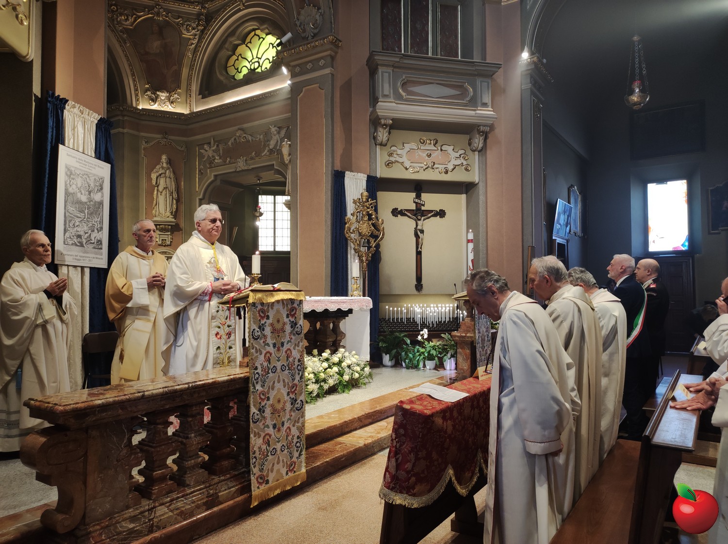 Il sindaco di Imbersago Fabio Vergani, il vicesindaco Elena Codara, il consigliere Francesco Cagliani, il vicesindaco Alfredo Casaletto di Merate, il luogotenente Edonio Pecoraro e i sacerdoti del Decanato di Brivio, hanno accolto il prelato insieme a numerosi fedeli che hanno gremito il Santuario.