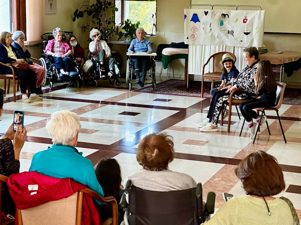 Si è trattato di otto incontri in cui i bambini e gli ospiti della rsa si sono messi in gioco, hanno costruito relazioni e preparato sketch per lo spettacolo finale.