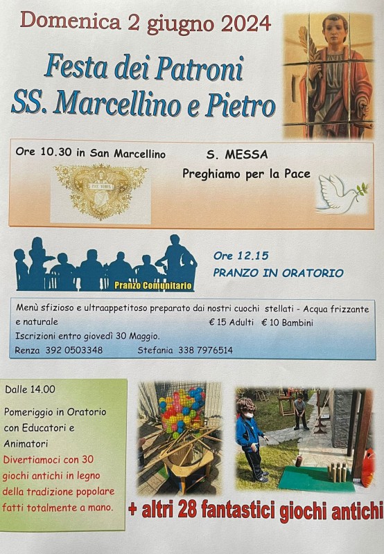La parrocchia dedicherà la giornata di domenica 2 giugno al festeggiamento dei patroni San Marcellino e San Pietro.