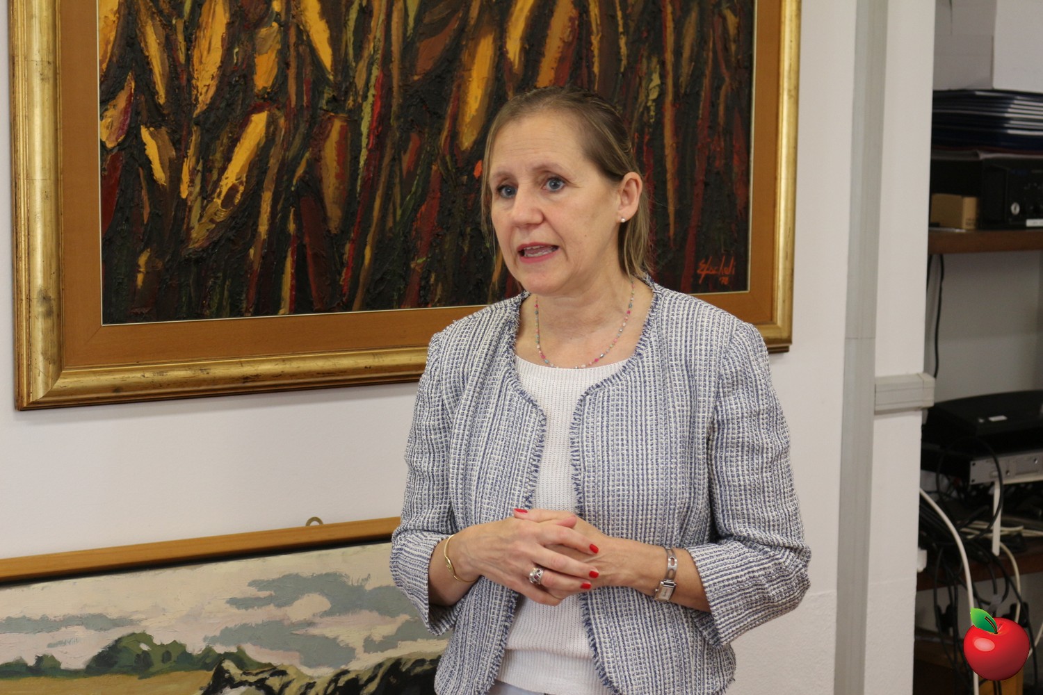 Il quadro scelto per il prestito annuale dall'Amministrazione è stato "La Roberta" dell'artista Walter Falletta. "Nel mondo condizionato dall'autismo, la pittura si è rivelata uno stimolo essenziale, una luce potente che oggi illumina la sua quotidianità stereotipata, fatta di gesti e pensieri ripetuti" ha spiegato la vicepresidente Gina Fubini dell'associazione Collegamenti APS, presente per consegnare di persona il dipinto. "Per molto tempo le persone hanno chiesto a Walter perchè chiamasse il quadro 'La Roberta', fino a che a qualcuno è venuto in mente il vecchio spot pubblicitario di un marchio di biancheria intima, chiamato appunto Roberta. Molti di noi se lo ricordano per un dettaglio che riguardava la modella protagonista e no, non è la treccia che Walter ha fissato nella sua mente, sicuramente tanti anni fa, guardando quella pubblicità, riuscendo così, per un attimo, a dare uno sguardo a quel mondo là fuori. Quello degli altri. 'La Roberta' per Walter rappresenta la bellezza femminile".
