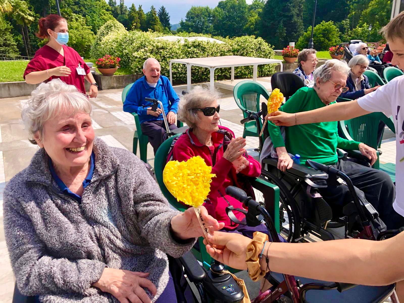 I bambini hanno regalato agli ospiti cuori fatti a mano e riempiendo quelli degli utenti di sincero affetto e condivisione. I progetti intergenerazionali continuano con entusiasmo e gioia da parte dei residenti della struttura.