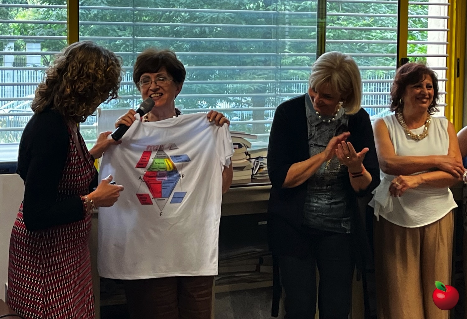 Le stesse hanno contraccambiato ricordando simpatici momenti condivisi insieme e aneddoti particolari per cui ciascuna è diventata “famosa” all’interno del liceo, come per esempio le pietre della professoressa di scienze Varani. A lei è andata una simpatica maglietta con tutti i nomi di pietre e cristalli che ha fatto studiare ai suoi alunni con la ormai mitica specifica: “e non chiamateli sassi!”.
