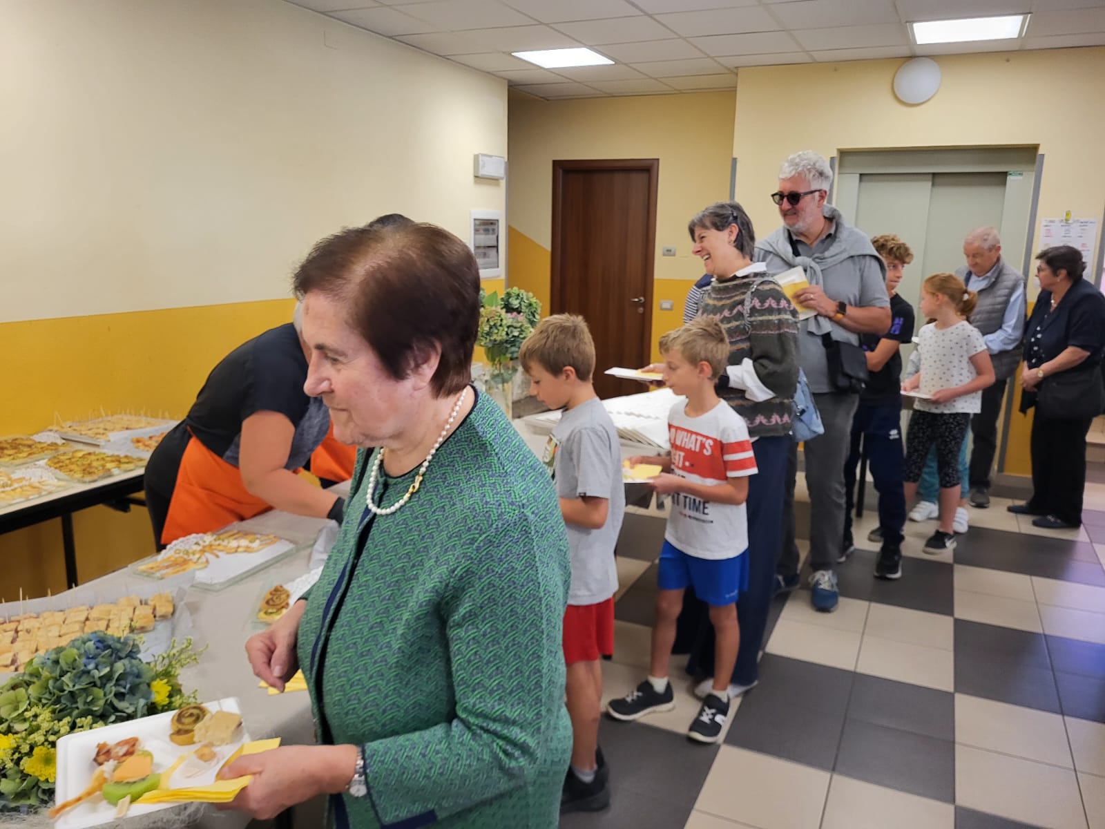 Dopo la Messa, rituale foto di gruppo sull’altare e rinfresco ‘nuziale’ per tutti i partecipanti alla Messa nel vicino oratorio di Montevecchia.