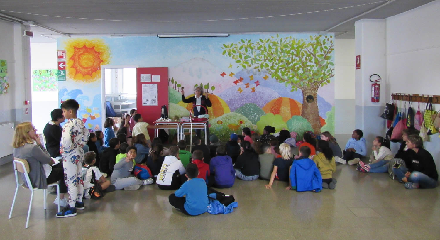 Nel corso della prima settimana di scuola inoltre gli studenti hanno realizzato dei murales per colorare le pareti interne dell’edificio. Il laboratorio è stato possibile grazie alla collaborazione con l’artista Simona Fumagalli, che da diverso tempo si rende disponibile per un progetto simile. Nel 2021 il murales era stato realizzato all’esterno ed è tutt’ora visibile da chiunque passi per via Giacomo Matteotti.