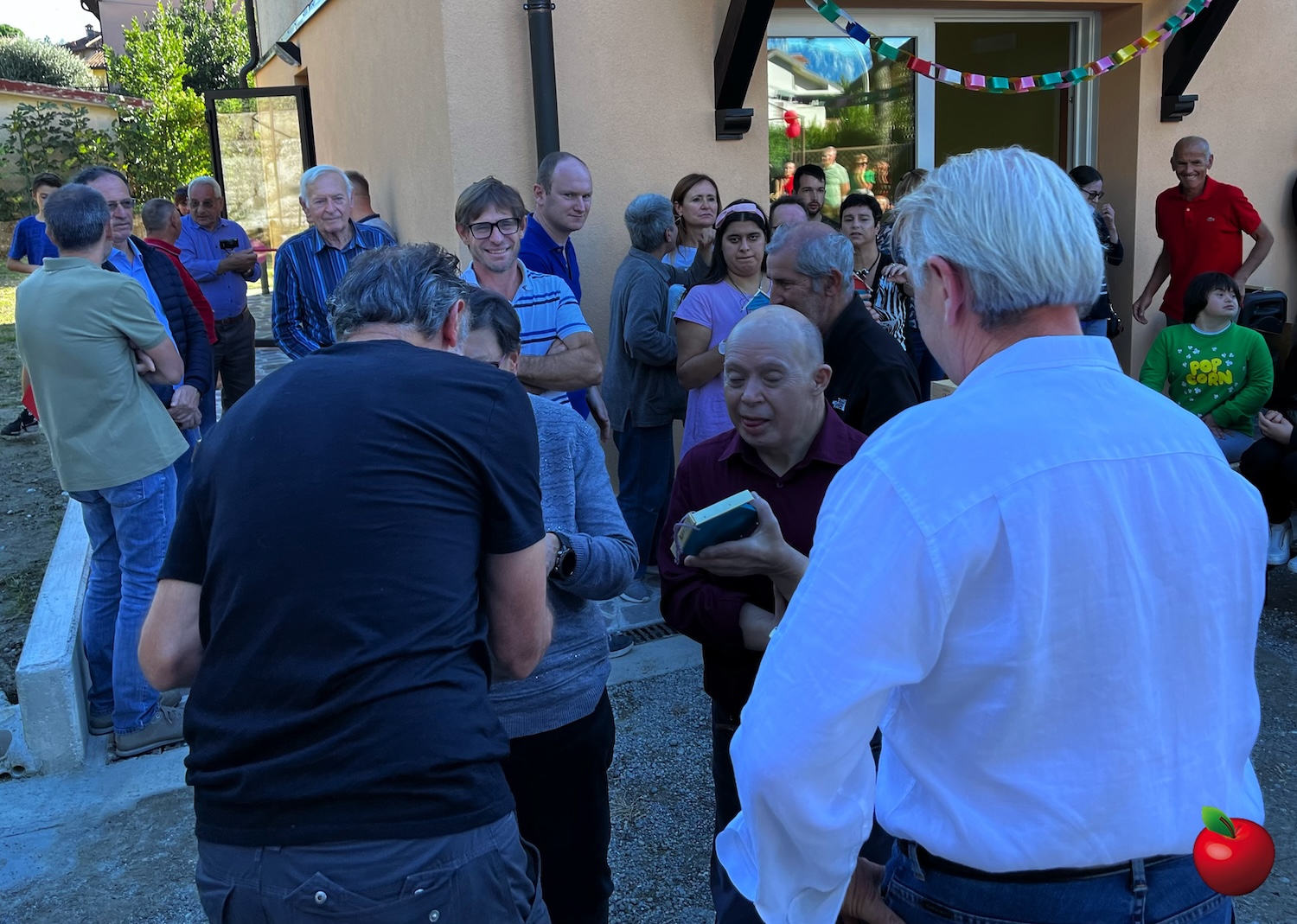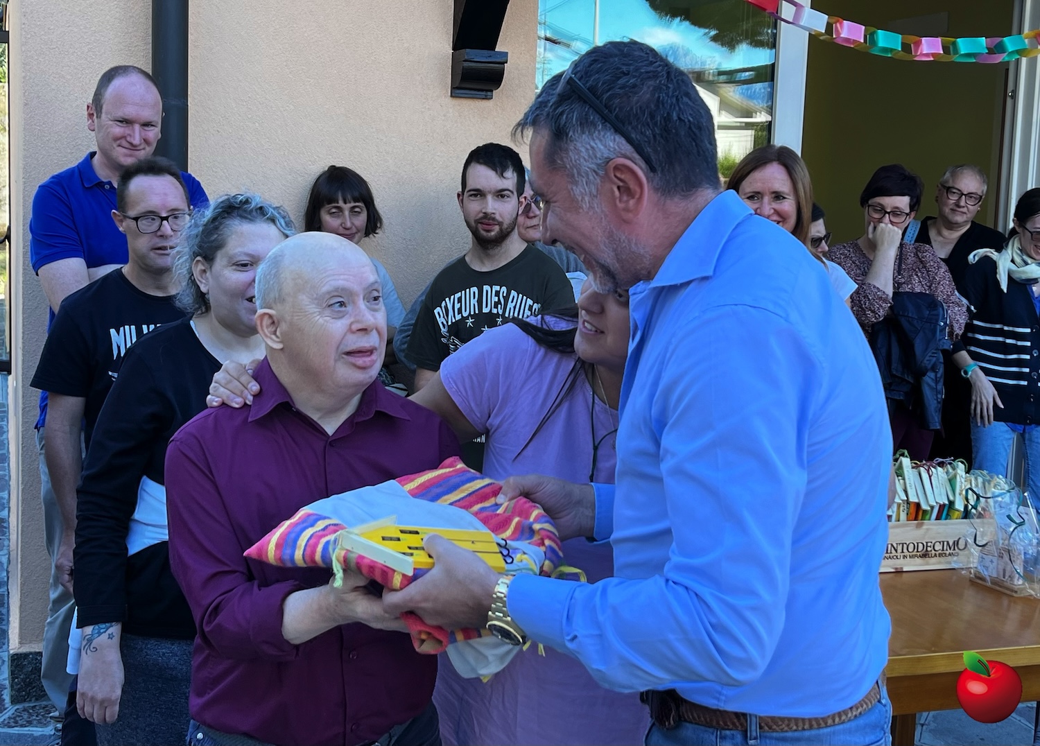 Un ulteriore ringraziamento però è andato a tutte le persone che hanno contribuito in un modo o nell’altro all’acquisto e alla ristrutturazione della nuova casa, a partire dall’ex proprietario Eugenio Anghilieri, che è andato incontro alla cooperativa, e a Cristiano Crippa di Technoprobe Spa, che in qualità di privato cittadino ha voluto sostenere L’Alveare nell’acquisto. Un grazie è andato anche a Bruno Conti dell’associazione Nostra Signora della Neve che ha donato l’ascensore, a Banca Intesa che ha donato gli arredi, all’ex presidente della cooperativa Francesco Ripamonti e a ogni singolo volontario che ha aiutato a sistemare la casa, tutte le imprese che vi hanno lavorato, notai e geometri, membri di diverse associazioni che a vario titolo hanno dato il proprio supporto. Ciascuno di loro è stato nominato e invitato a ritirare un omaggio realizzato dai ragazzi de L’Alveare: una piccola casetta in legno colorata.