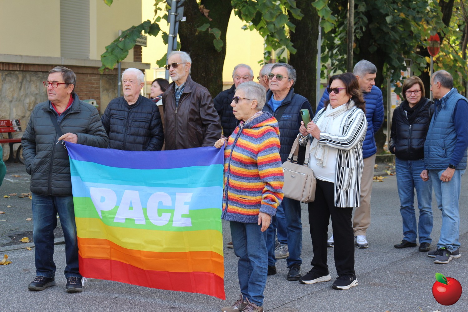 In un'atmosfera di raccoglimento, il corteo ha poi attraversato le vie del paese portando con sé la bandiera della pace, simbolo di speranza e impegno verso un futuro senza conflitti. La prima tappa è stata la cappella comunale del cimitero, dove alle è stata deposta una corona di alloro in memoria dei caduti.