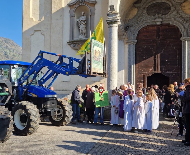 Dopo la santa Messa don Giancarlo Cereda ha raccolto i fedeli in un momento di preghiera sul sagrato della chiesa, dove sono stati radunati anche alcuni trattori delle aziende agricole e dei coltivatori della zona.