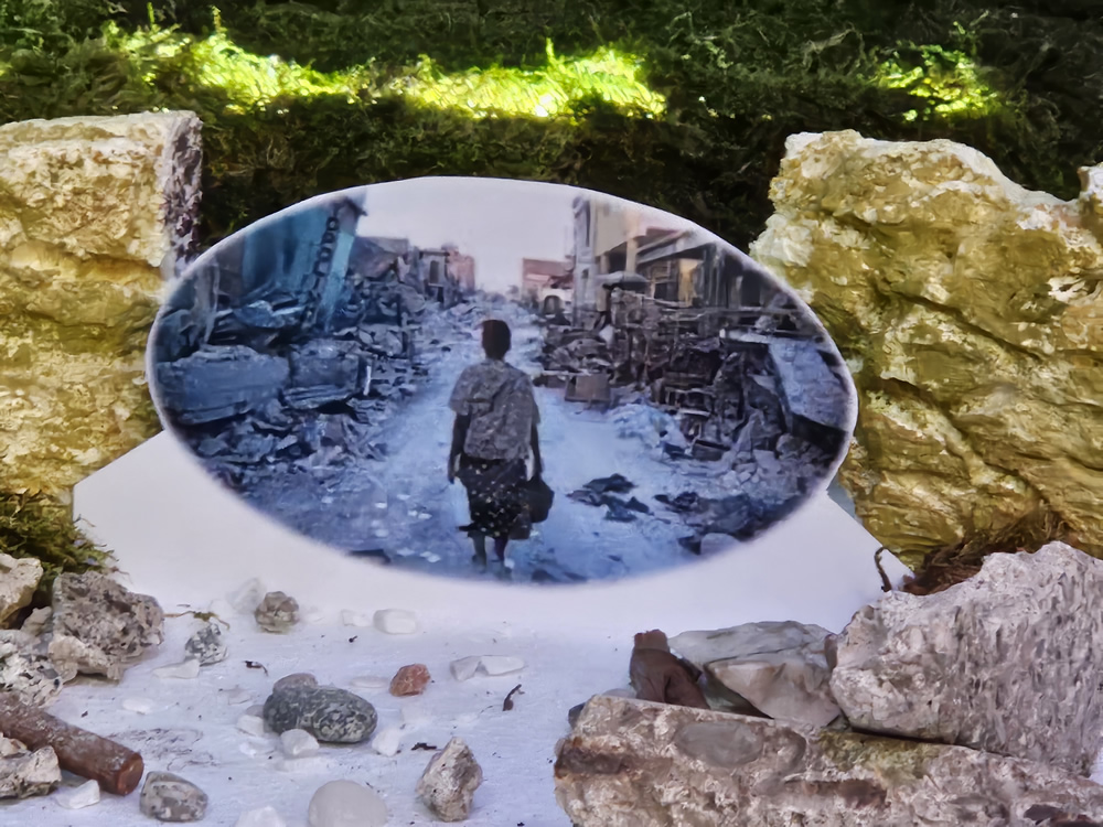 A Lomagna nell'ampia distesa davanti alla capanna è comparsa suor Luisa Dell'Orto, religiosa uccisa ad Haiti, con scene di povertà e di dolore che ricordano la sofferenza odierna.