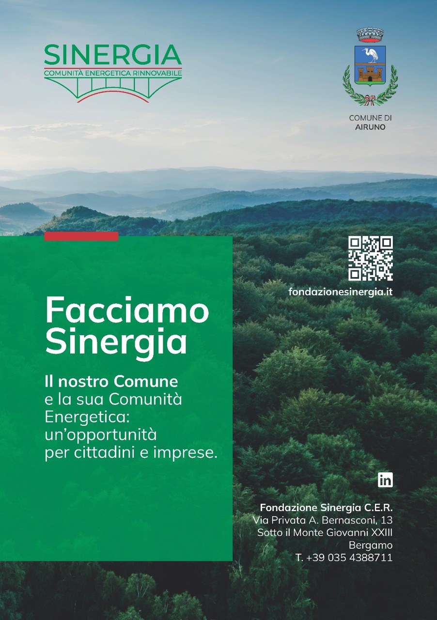 Airuno è stato il 40° paese ad aderire alla Fondazione Sinergia, la Comunità energetica rinnovabile (CER) a controllo pubblico più grande di Lombardia. Lo scorso mese il consiglio ha approvato la costituzione della CER e ora vi possono aderire anche cittadini, associazioni e piccole e medie imprese interessate a promuovere la produzione di energia elettrica rinnovabile e la sua condivisione tra gli aderenti.