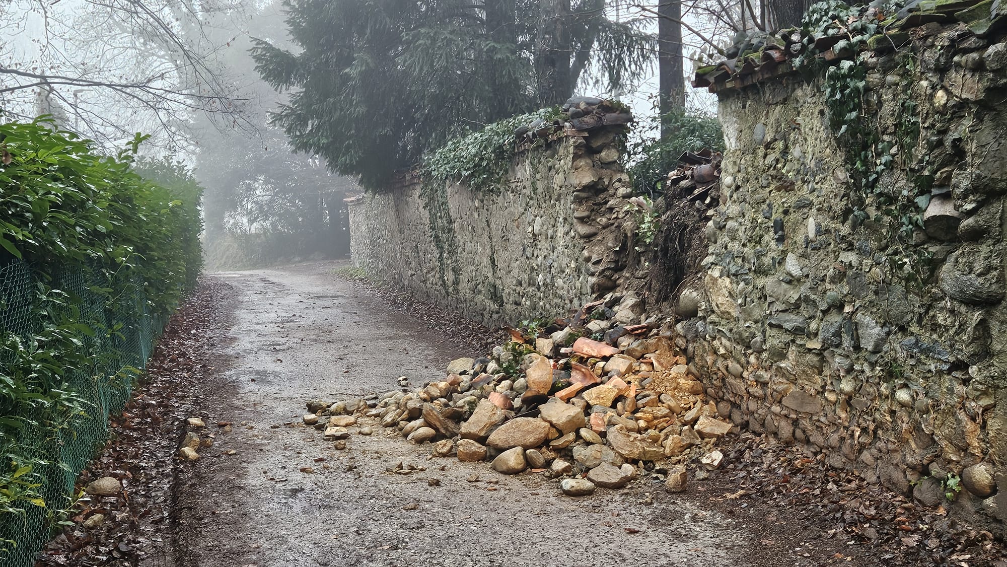 Nella notte, probabilmente a causa delle piogge, una porzione del muro di cinta di villa Subaglio, è crollata.