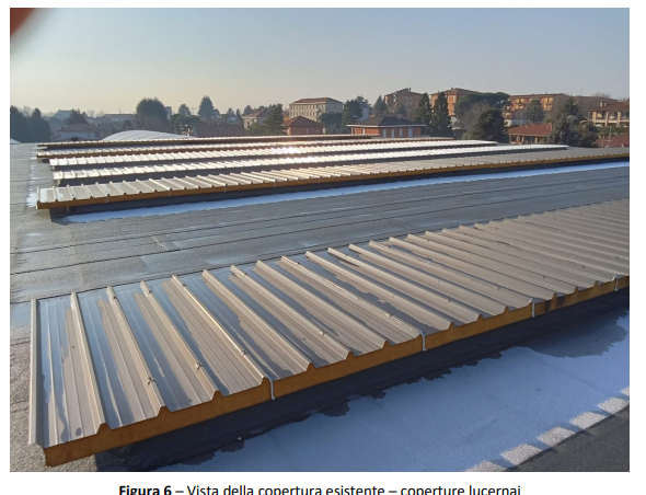 I pannelli verranno posizionati su file distanti 0,50 metri per evitare problemi di ombreggiamento e su supporti costituiti da zavorre in elementi prefabbricati di calcestruzzo, interponendo tra la copertura uno strato di materiale resiliente (gomma, neoprene, etc.) al fine di distribuirne l’appoggio sull’impermeabilizzazione esistente.