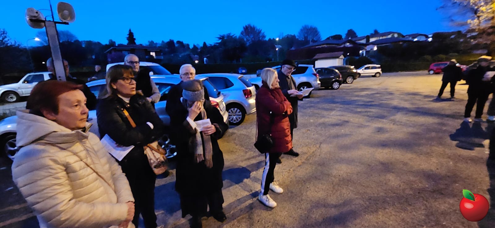 Moltissimi i fedeli che, alle 20.30, si sono radunati nel piazzale e, guidati dal vicario episcopale don Gianni Cesena e dal cappellano don Biagio Fumagalli, hanno ripercorso alcune delle tappe della Passione di Gesù.