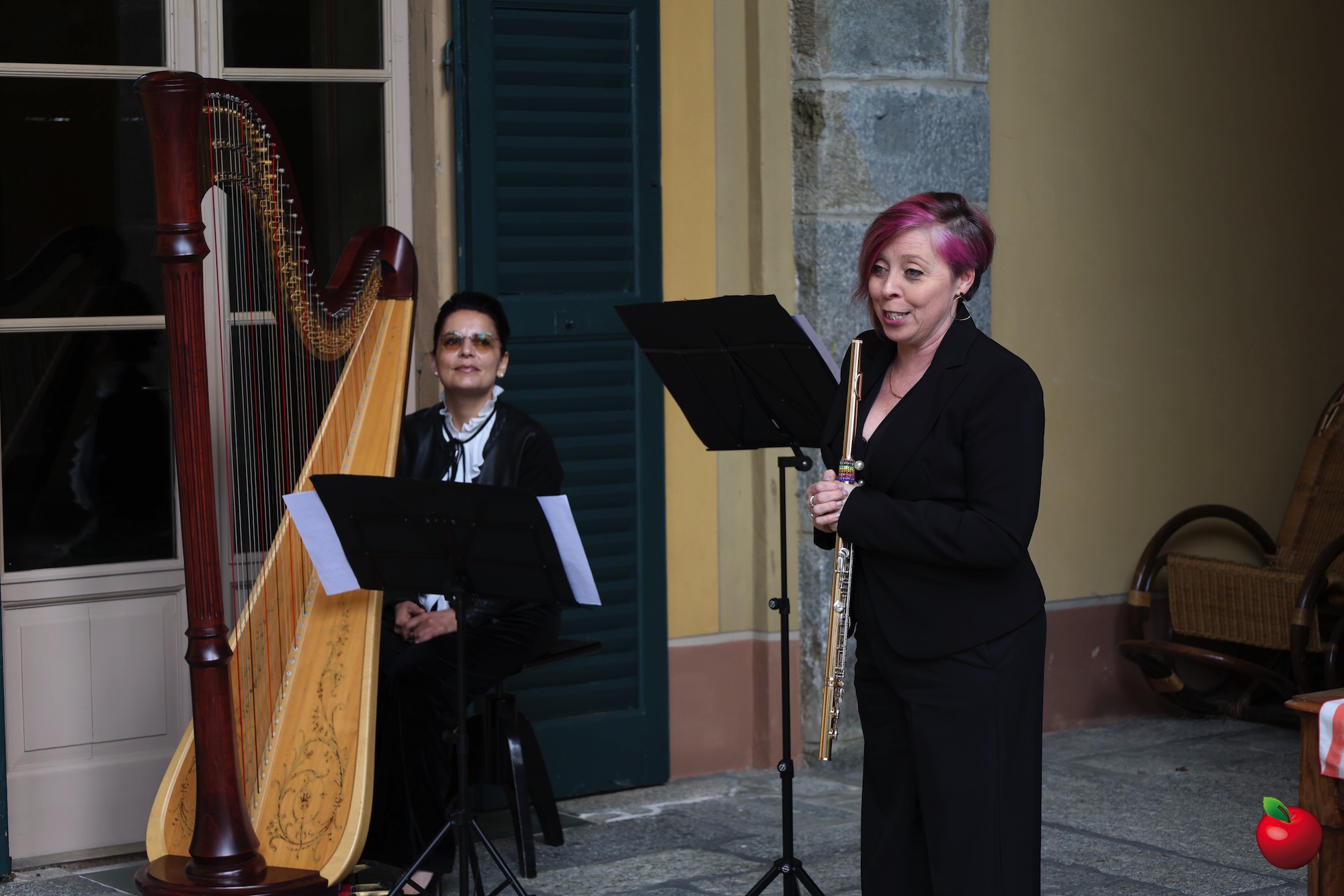Al termine della presentazione, impreziosita dal duo flauto e arpa “Vento dell’Est” composto dalle musiciste Viliana Dimitrova Ivanova e Daisy Citterio, il pubblico è stato guidato a piedi alla chiesina di Hoè per ammirare l’affresco.