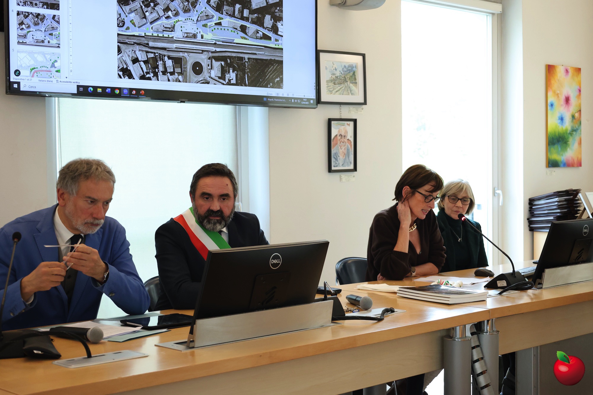 Lo studio con sede a Olgiate Molgora ha presentato un progetto frutto del lavoro di squadra di più figure: gli architetti Gabriele Panzeri, Elena Cavedini, Francesco Pavan e Luca Panzeri, l’agrotecnico Roberto Cigliano e l’architetto Roberta Di Palma (che si sono occupati del verde), e il tecnico restauratore Alessandra Barbero e la dottoressa Lidia Viganò (che si sono occupati del restauro della Fontana). A presentare il progetto in sala consiliare in particolare è stato l’architetto Elena Cavedini, che, affiancata dal collega Luca Panzeri, ha spiegato come sono arrivati e ripensare la piazza e da quali principi sono partiti.