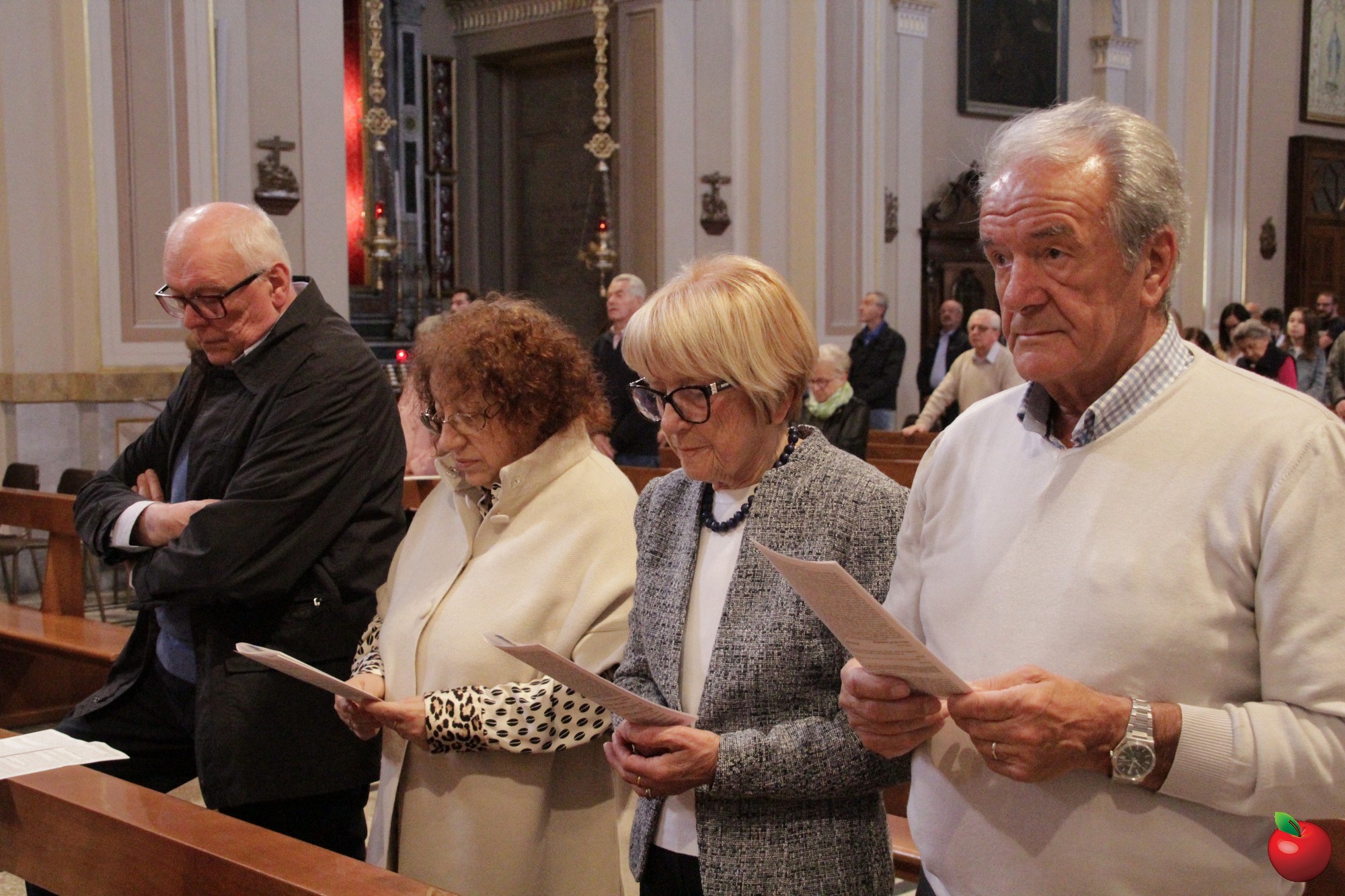 Radunati nelle prime panche 8 coppie hanno voluto ricordare il loro 55mo, 50mo, 40mo, 30mo dalla data del SI davanti all'altare.