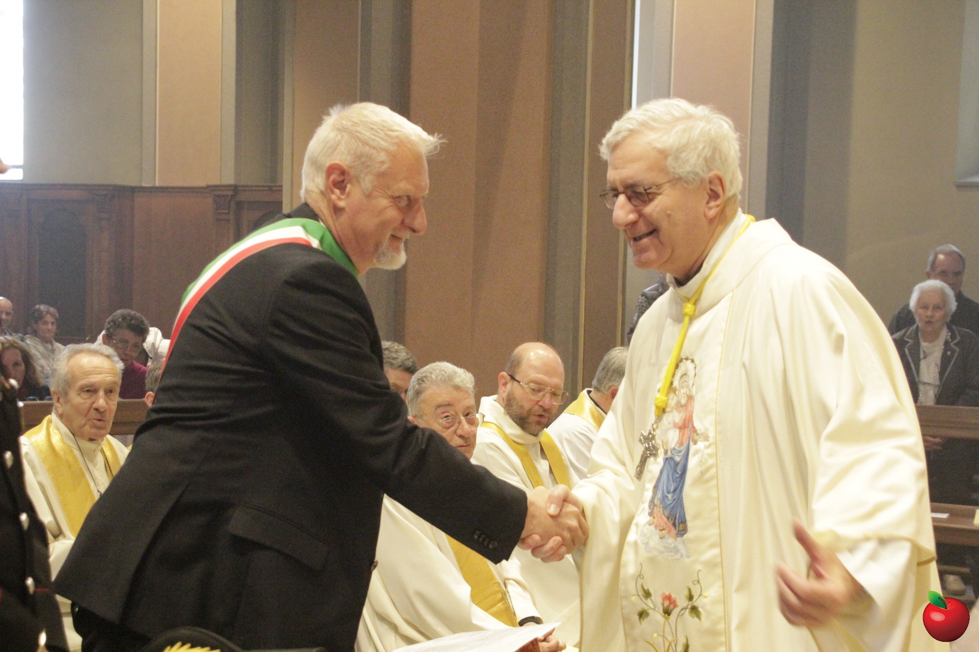 Impossibilitati a svolgere la processione dalla penitenzieria sino al sagrato, a causa del maltempo, i celebranti si sono ritrovati direttamente in chiesa, alla presenza dei sindaci Fabio Vergani e Mattia Salvioni e del comandante della stazione carabinieri luogotenente Edonio Pecoraro.