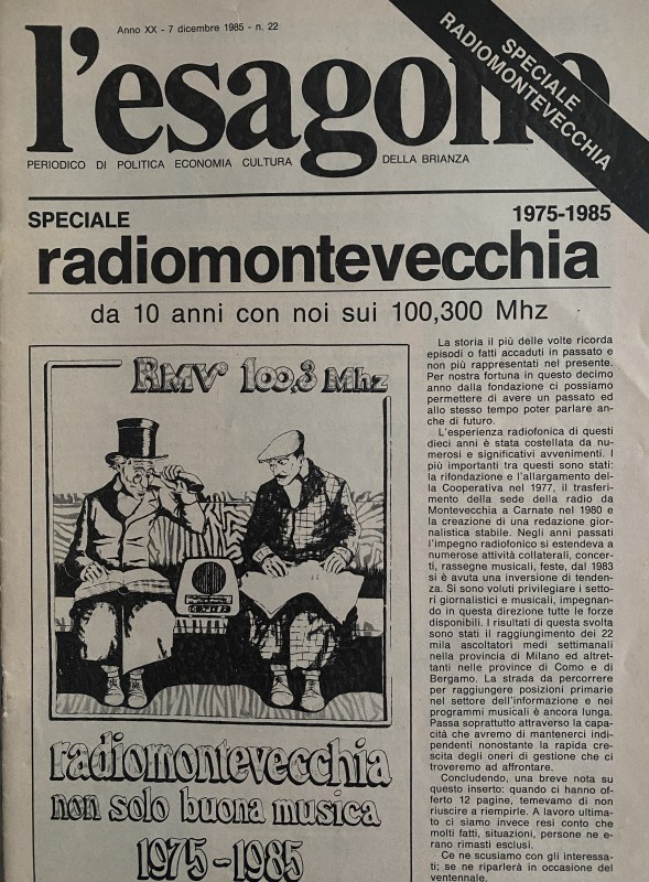 La notte di Natale del 1975, dall'iniziativa di una ventina di giovani del territorio, nasceva Radio Montevecchia (RMV). Animati da grande entusiasmo e passione, quei ragazzi – dopo averne discusso a più riprese in un bar di Piazza Libertà a Missaglia - diedero vita ad un esperimento inedito per l'epoca: trasmettere (buona) musica, fare informazione e occuparsi di piccole rubriche ''di nicchia''. Il tutto da un locale di Via Alta Collina al civico 14 che nel giro di poco tempo divenne il quartier generale di giovani appassionati del territorio, ma anche di un affezionato pubblico, in arrivo un po' da tutta la Brianza, Monza compresa.