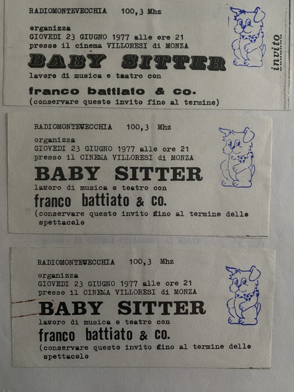 ''Anche noi avevamo bisogno di raccogliere fondi per sostenerci e così iniziammo a proporre i primi concerti'' ci ha raccontato Giordano Casiraghi, giornalista missagliese che a Radio Montevecchia fece il suo ingresso un mese dopo la fondazione e che di quella esperienza ha scritto anche nei suoi libri. Da un contatto con Franco Battiato – di cui sarebbe diventato poi grande amico – nacque l'idea di portarlo sul palco del teatro Villoresi di Monza con uno spettacolo dal titolo Baby Sitter. ''Arrivarono in tantissimi per assistere all'evento: alcuni addirittura da Cremona, Pavia e Mantova. Non ce lo aspettavamo''.