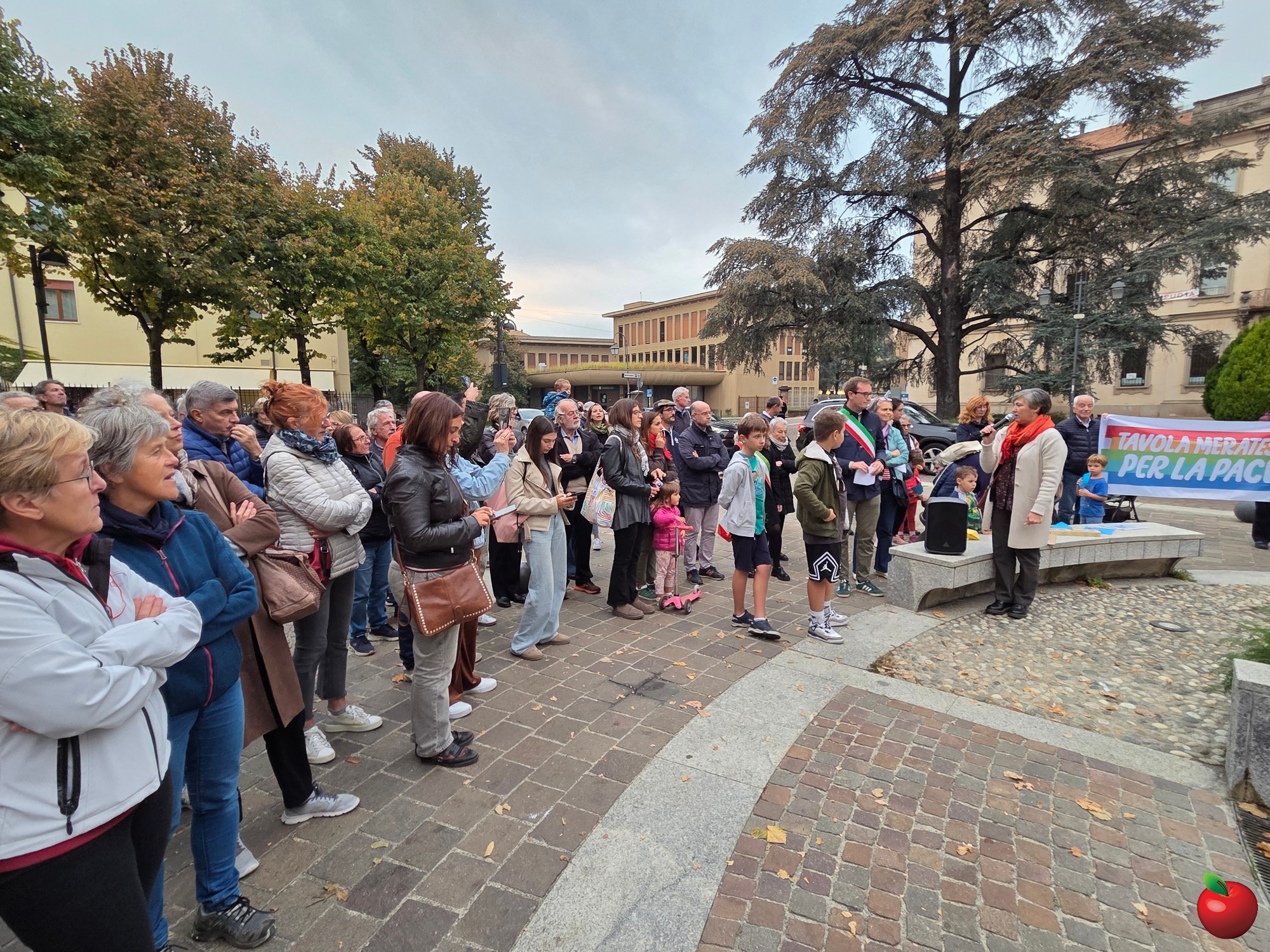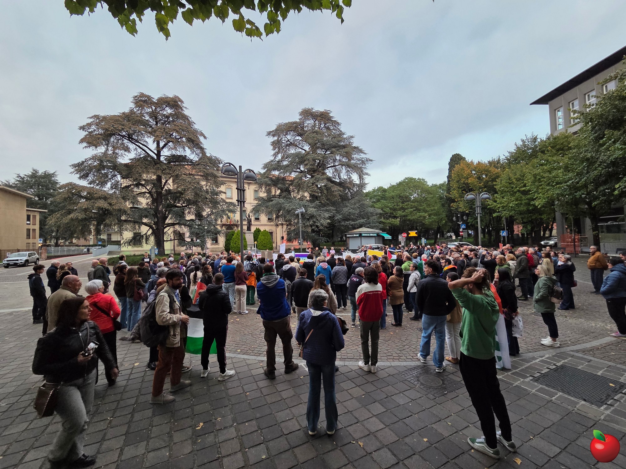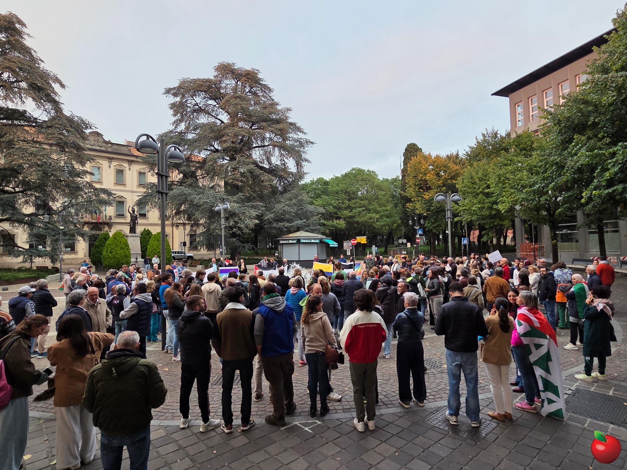 Tra le 250 e le 300 persone nel tardo pomeriggio di venerdì 3 ottobre hanno raccolto l'appello, lanciato all'ultimo dall'amministrazione di Merate, per ritrovarsi in piazza degli Eroi e dare vita a un presidio per dire basta al genocidio in atto nella striscia di Gaza.