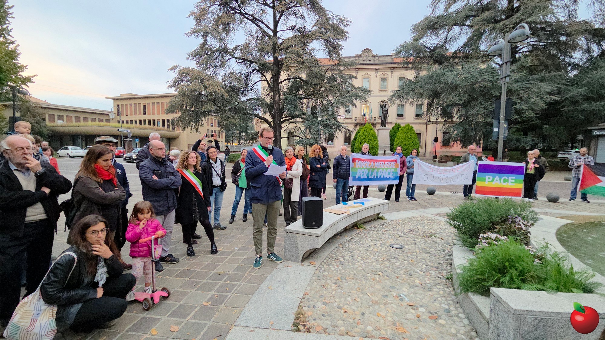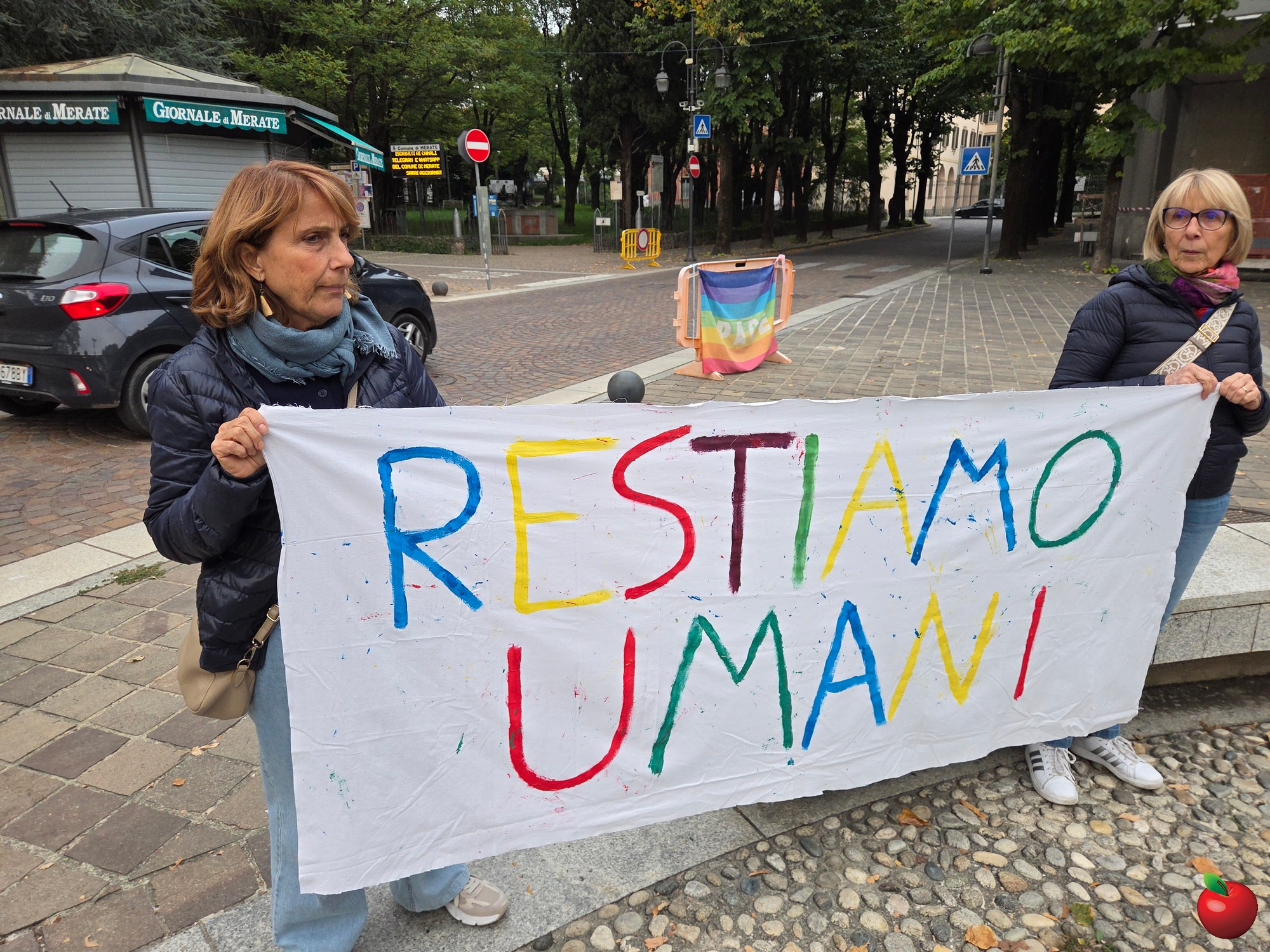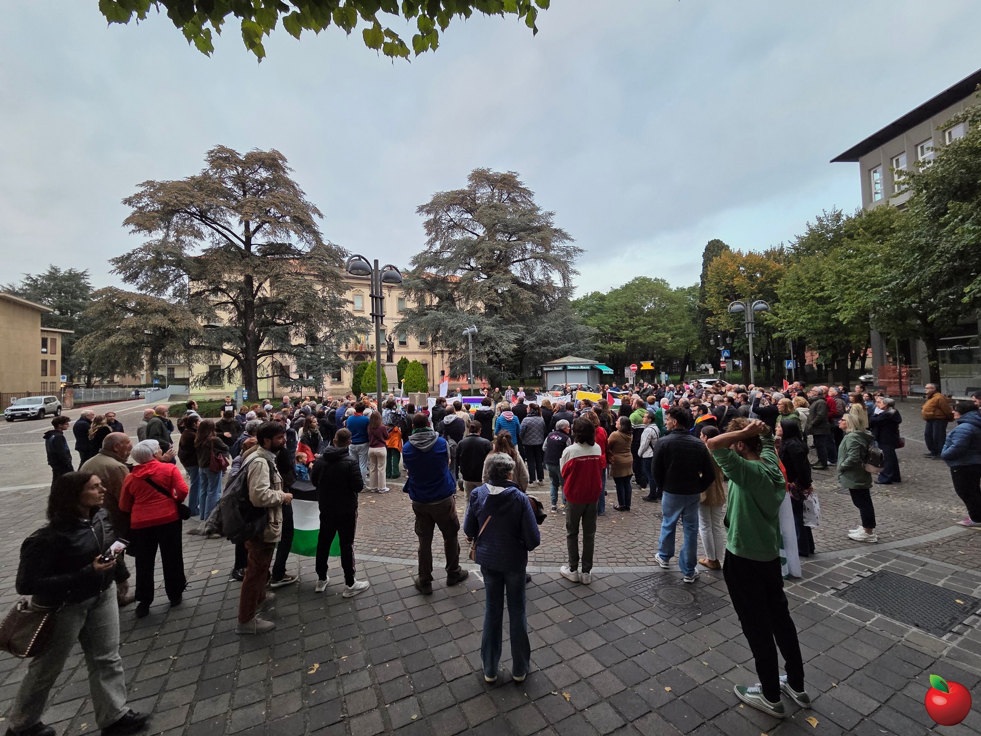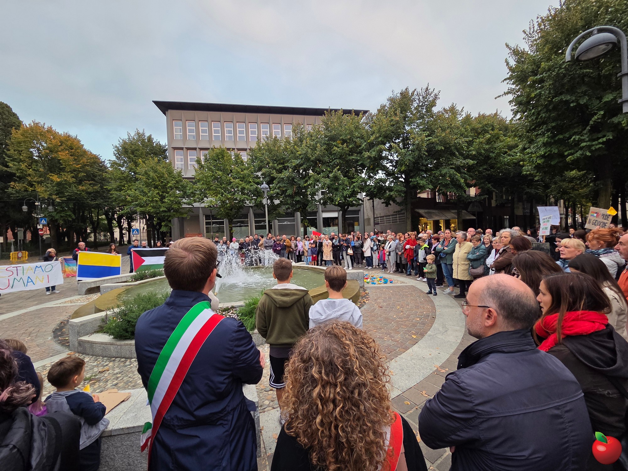Tra le 250 e le 300 persone nel tardo pomeriggio di venerdì 3 ottobre hanno raccolto l'appello, lanciato all'ultimo dall'amministrazione di Merate, per ritrovarsi in piazza degli Eroi e dare vita a un presidio per dire basta al genocidio in atto nella striscia di Gaza.