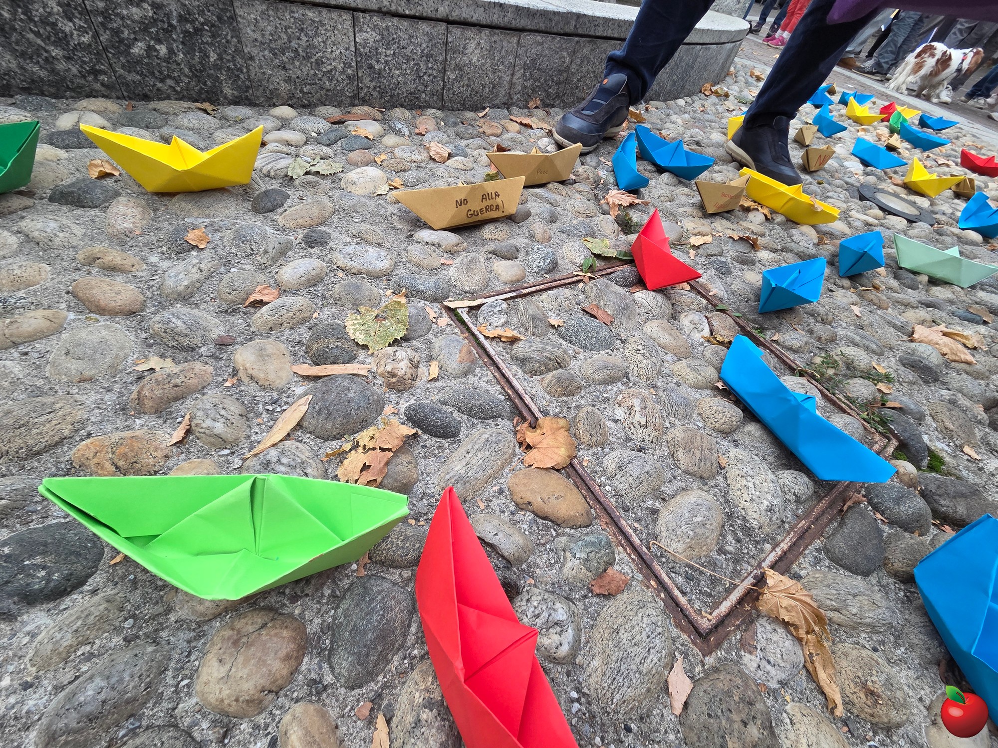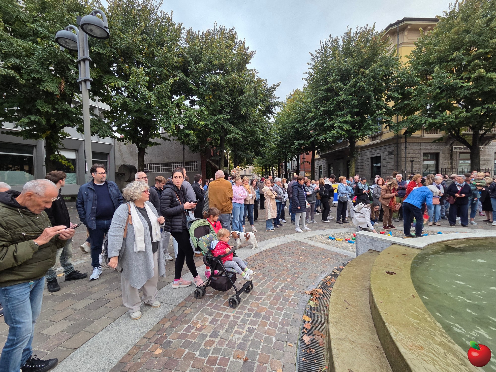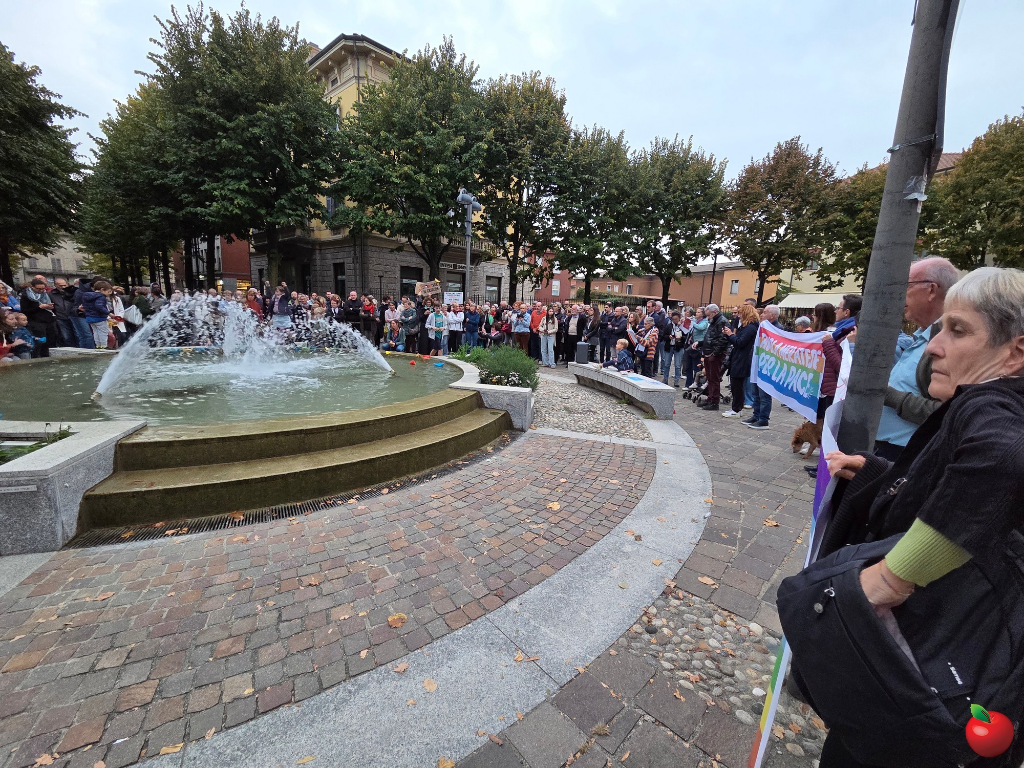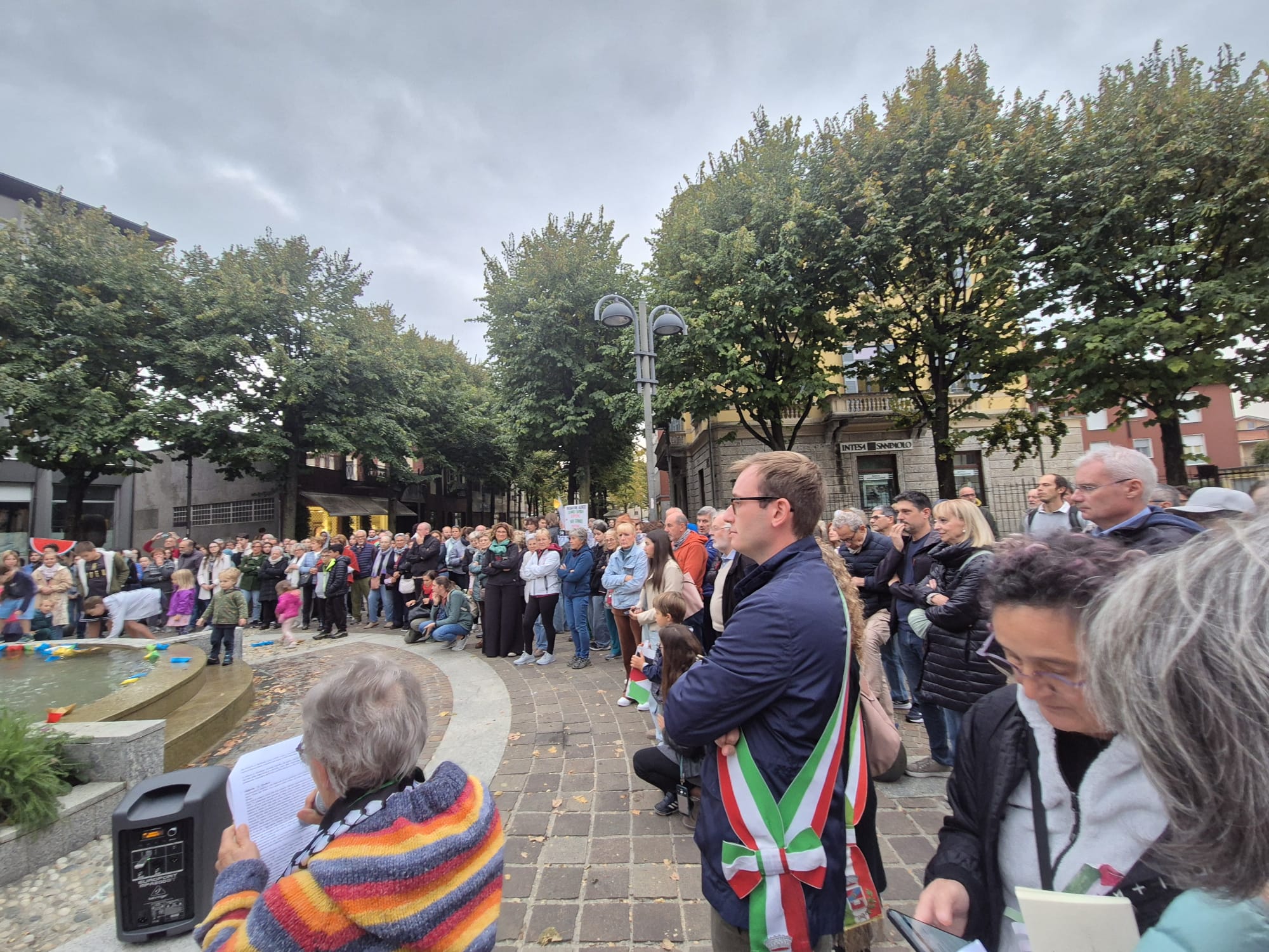 Dai bambini agli anziani, tutti si sono radunati attorno alla fontana, vista un po' come il mare che lambisce le terre del massacro, e qui con striscioni e barche colorate di carta, poi adagiate sull'acqua, hanno detto il loro no alla guerra e al ritorno a un dialogo costruttivo per un cessate il fuoco duraturo.